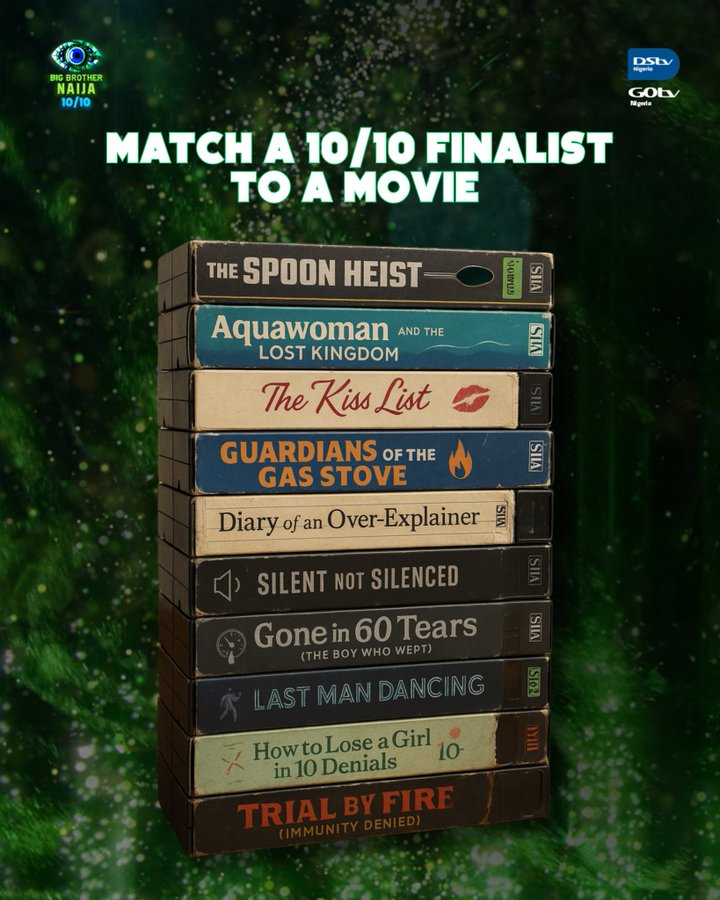 The Big Brother Naija Season 10 conversation spilled onto social media this week after a playful challenge invited fans to match movie titles to the ten remaining housemates. In a post that quickly went viral, the titles – such as “Spoon Heist,” “Aquawoman and the Lost Kingdom,” and “Gone in 60 Tears” – were designed to mirror each contestant’s personality or recent antics in the House.