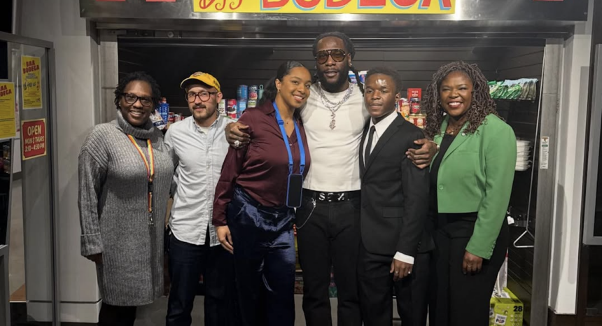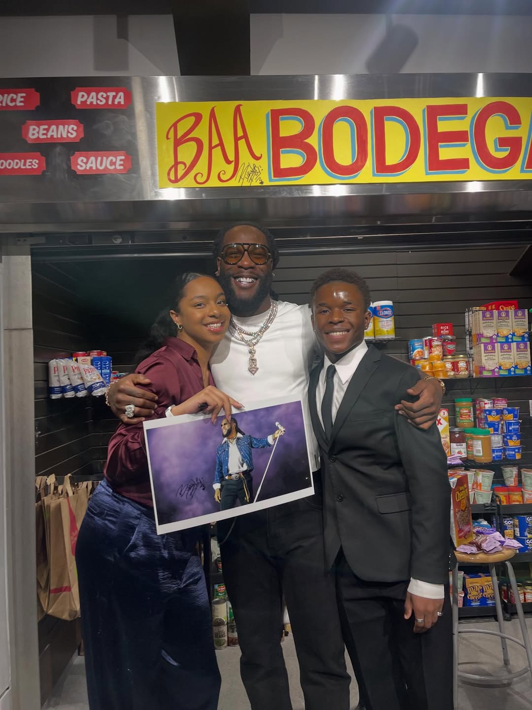 Pulling into the school unannounced, Burna walked the halls like a proud big brother, meeting the young changemakers and donating a huge supply of groceries to help keep the Bodega alive. Shrieks, tears, dancing, and unfiltered joy swept through the building as students realized their hero stood right in front of them.