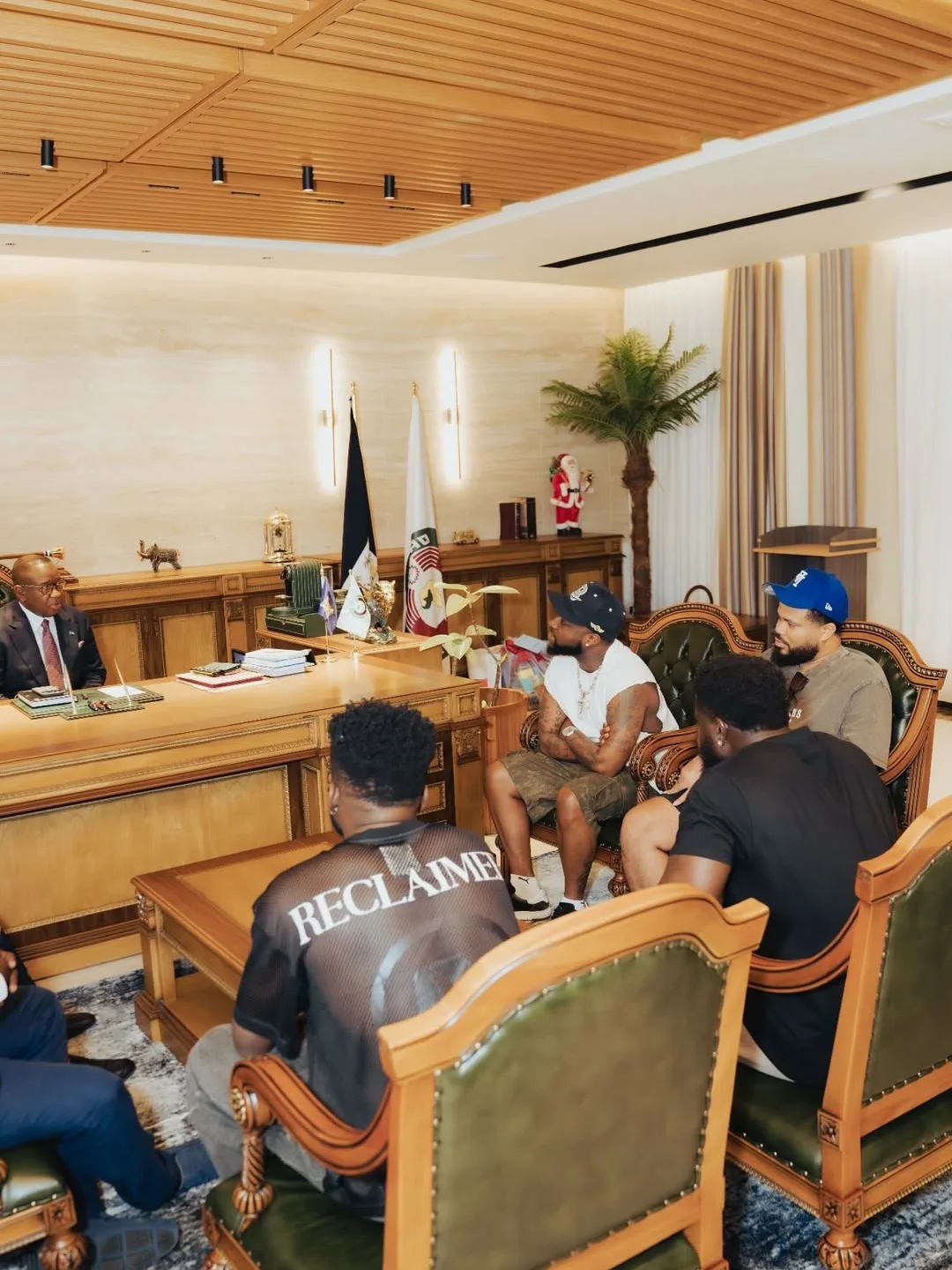 Davido at the State House with the President Maada Bio in Sierra Leone