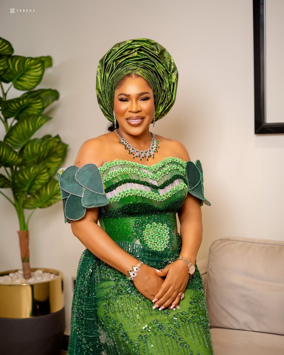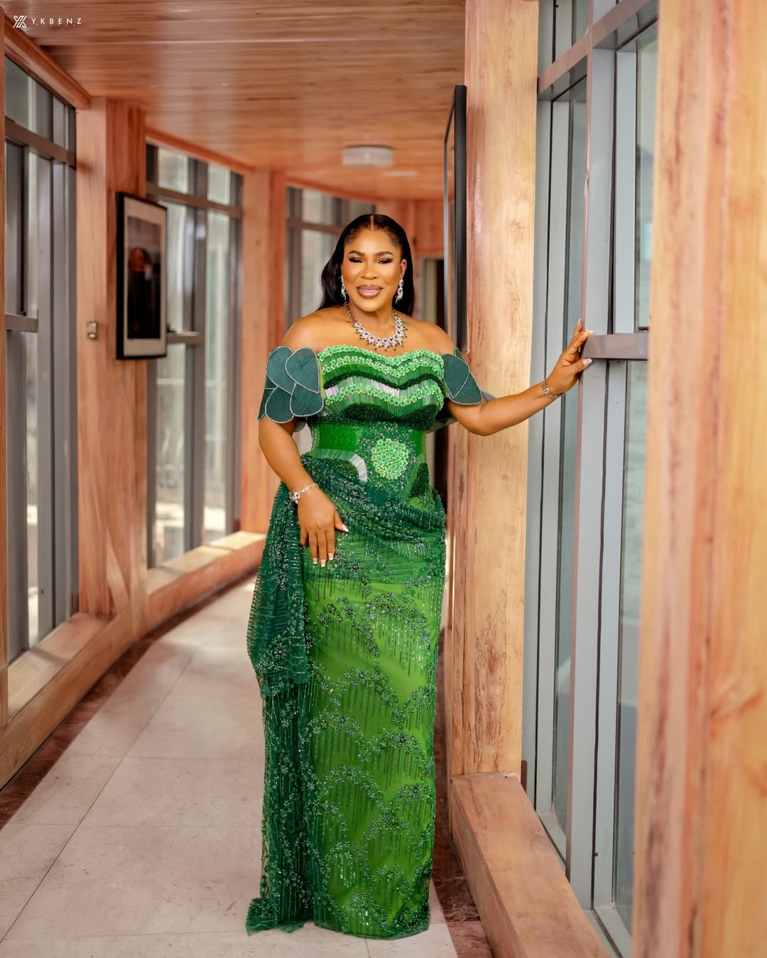 The award-winning actress marked her new year with a powerful message of gratitude and faith, all while adorned in a spectacular emerald green creation by the Lagos-based fashion brand, Collette Creations.
