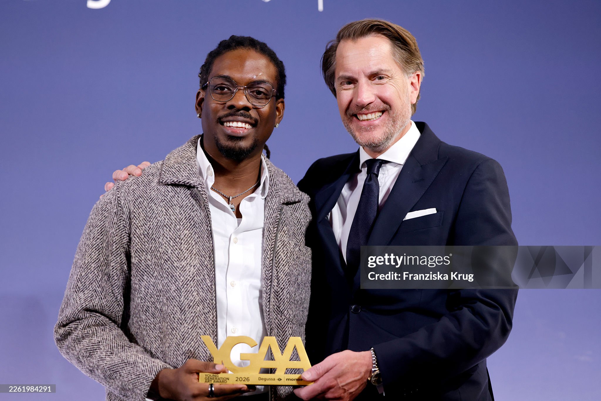 BERLIN, GERMANY – FEBRUARY 19: Ken Nwadiogbu and Christian Rauch during the Young Generation Art Award 2026 at Hotel De Rome on February 19, 2026, in Berlin, Germany. (Photo by Franziska Krug/Degussa via Getty Images)
