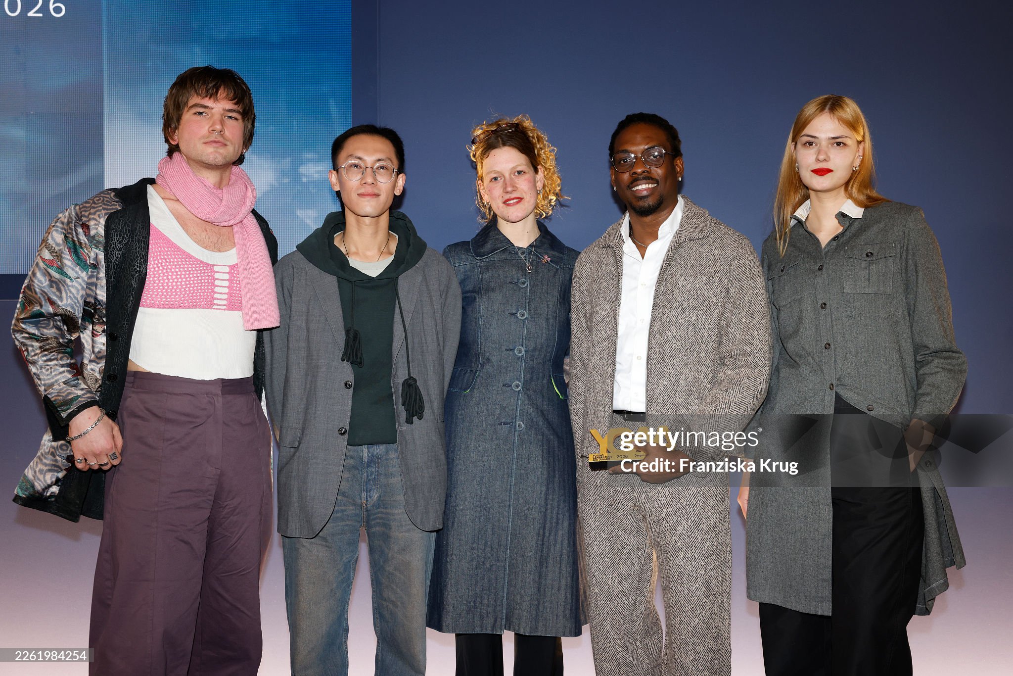 BERLIN, GERMANY – FEBRUARY 19: Arne Grashoff, Yuhao Chen, Lunita July Dorn, Ken Nwadiogbu and Emmélie Lempert during the Young Generation Art Award 2026 at Hotel De Rome on February 19, 2026 in Berlin, Germany. (Photo by Franziska Krug/Degussa via Getty Images)