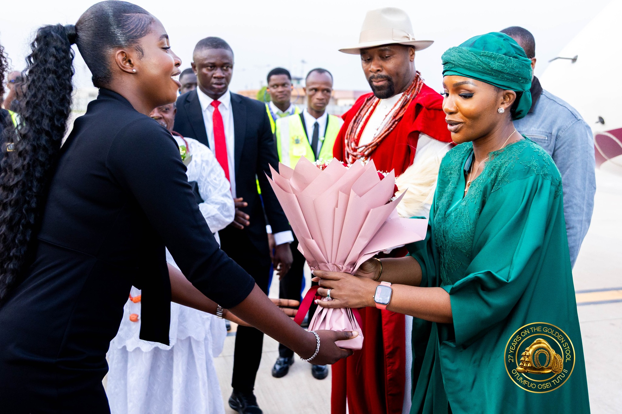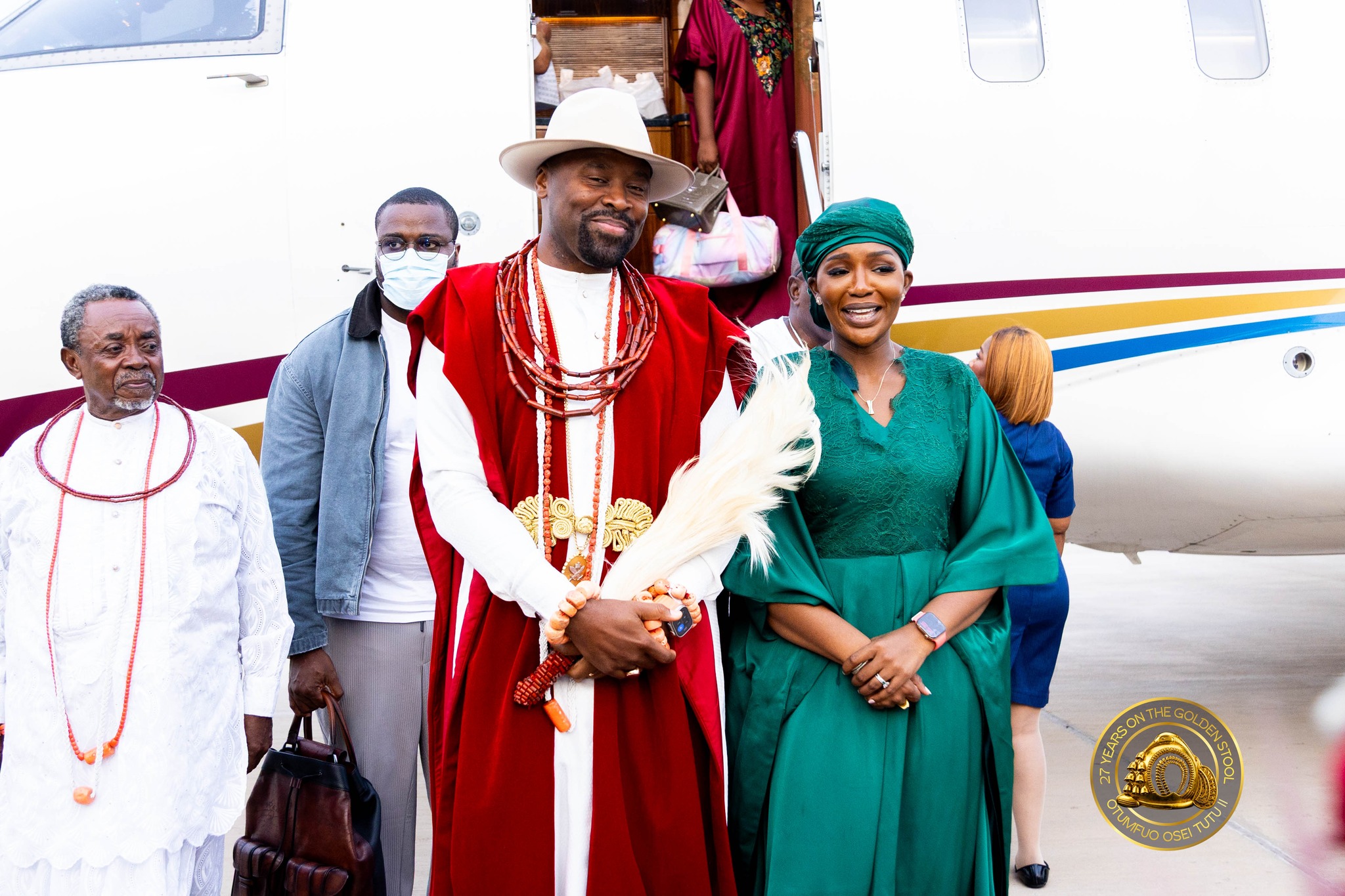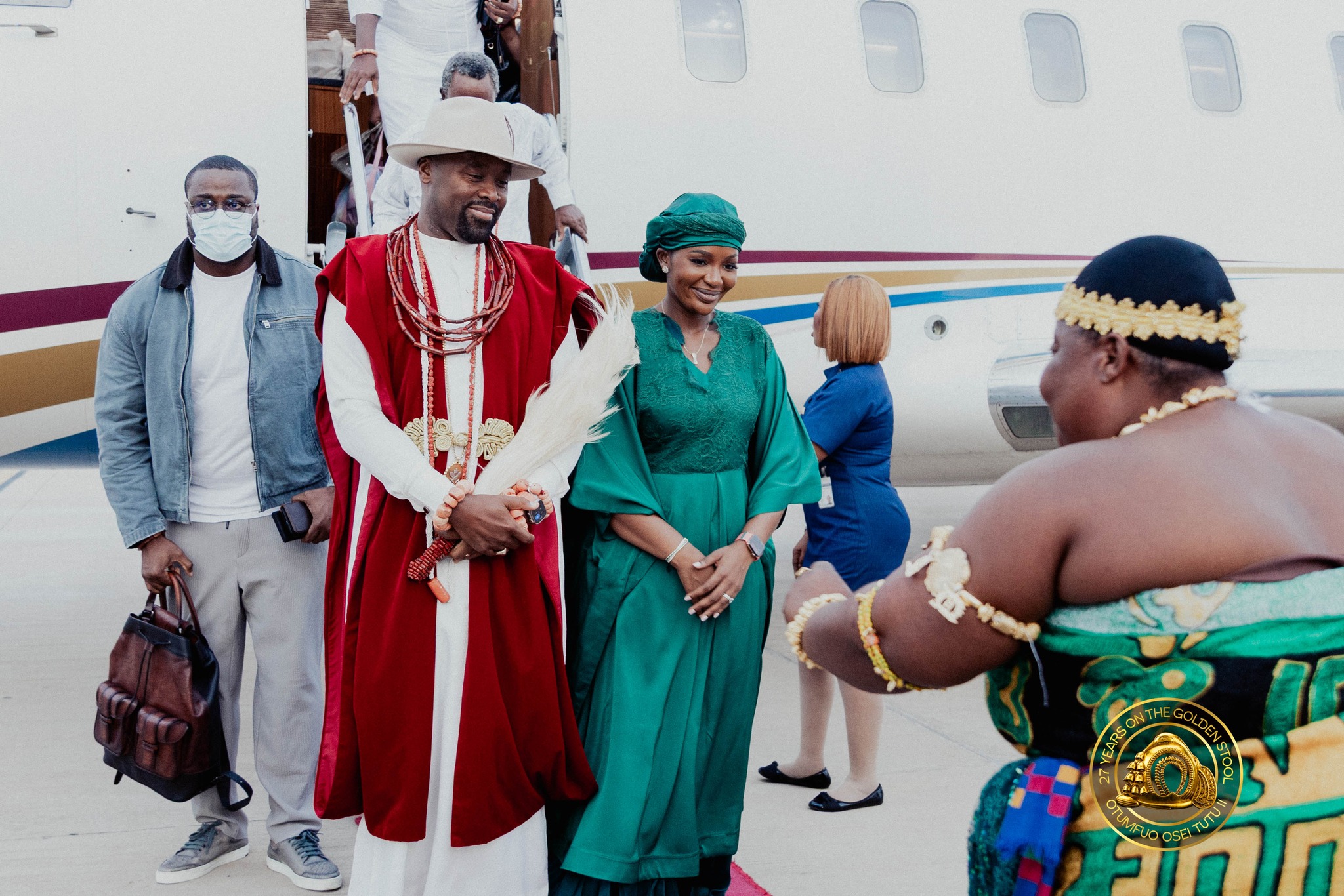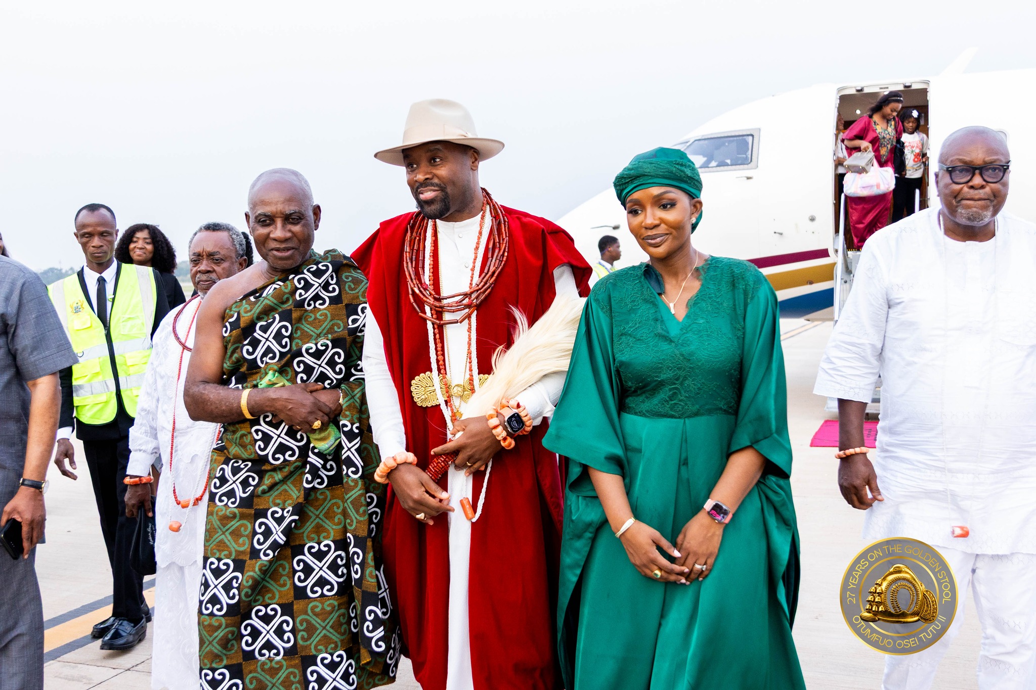 The Olu of Warri Kingdom touched down at Kumasi’s Prempeh I International Airport today, April 23, accompanied by Queen Consort Olori Atuwatse III, for a landmark royal visit to the Asante Kingdom.